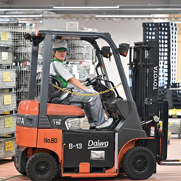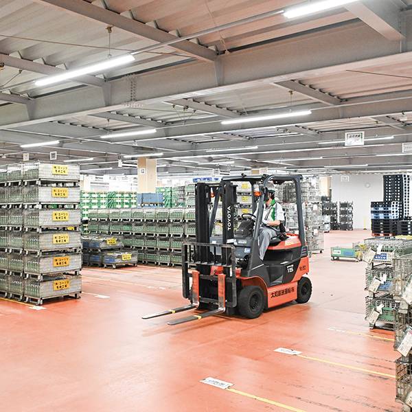 フォークリフト運用や荷役作業には厳格な安全ルールを適用。全スタッフに定期的な教育を実施し、事故ゼロを目指します。