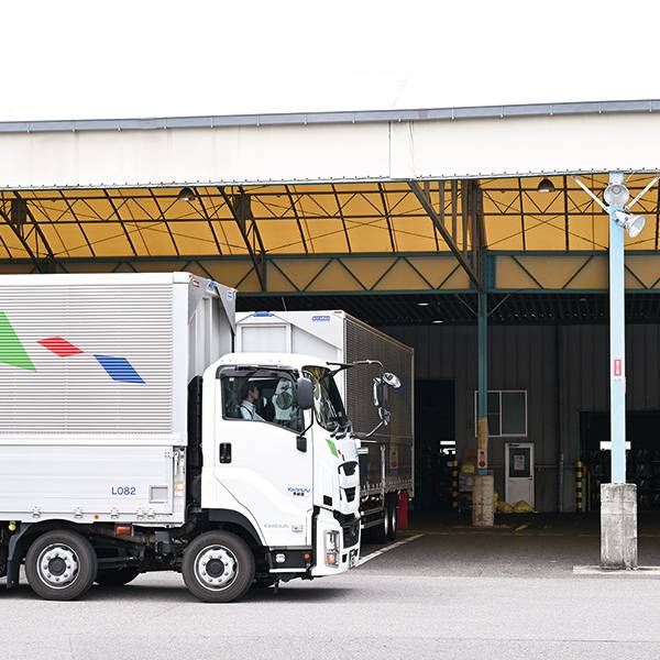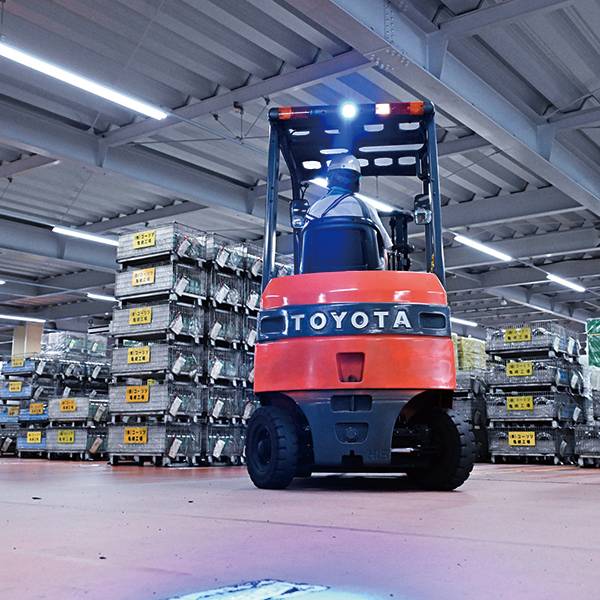 環境負荷の少ない電動フォークリフトを導入。排ガスゼロで作業環境と地球にやさしい物流を実現しています。