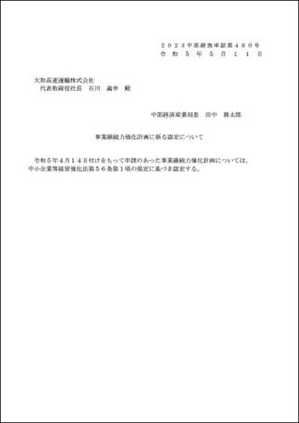 事業継続力強化計画認証